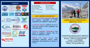 - Hydro-geological investigation for rainwater harvesting studies and water quality monitoring for obtaining CGWA NOC for M/s. Windlass Developers, Harrawala, DDUN (UK), Sep- 2020.